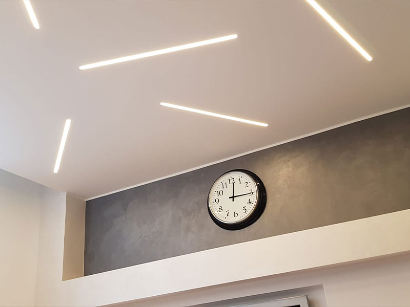Le opere in cartongesso e gesso permettono di costruire in maniera più veloce e precisa, limitando la formazione di macerie e di polvere e possono integrare facilmente illuminazione a led per rendere più affascinanti le creazioni.